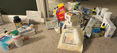 During nap time, I went through the medicines drawers upstairs & sorted them out. It didn't feel like it'd been that long since I last did that, but apparently it was while I was still pregnant, because a bunch of things in there were from that time & had expired in the two+ years since! There were a few random things that were even older & I don't know how I managed to transfer them into those drawers without realizing that they'd expired as early as 2005! o.O